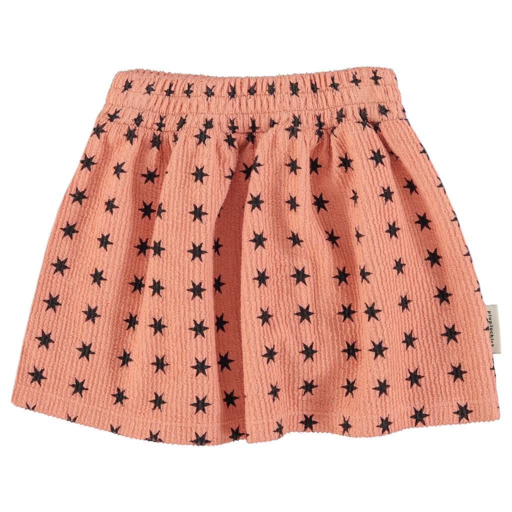 Short skirt in textured cotton fleece. Pleated effect. Elastic waist.