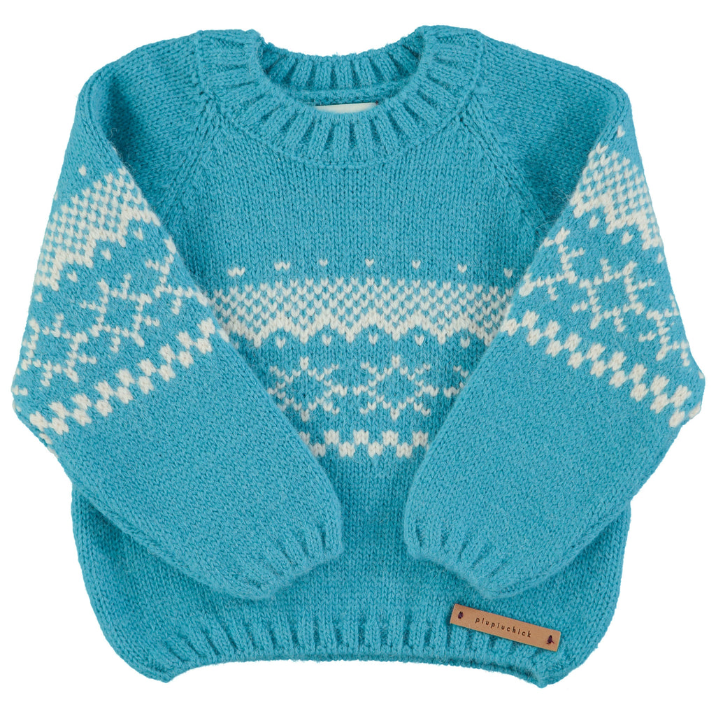 Knitted sweater with jacquard detail. Baby sizes have buttons on the shoulder. Detailed with leather logo label