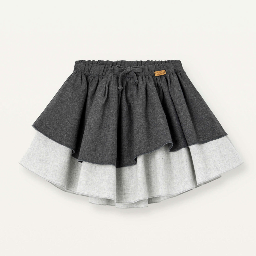 Popelin Anthracite Grey Double Layer Short Skirt