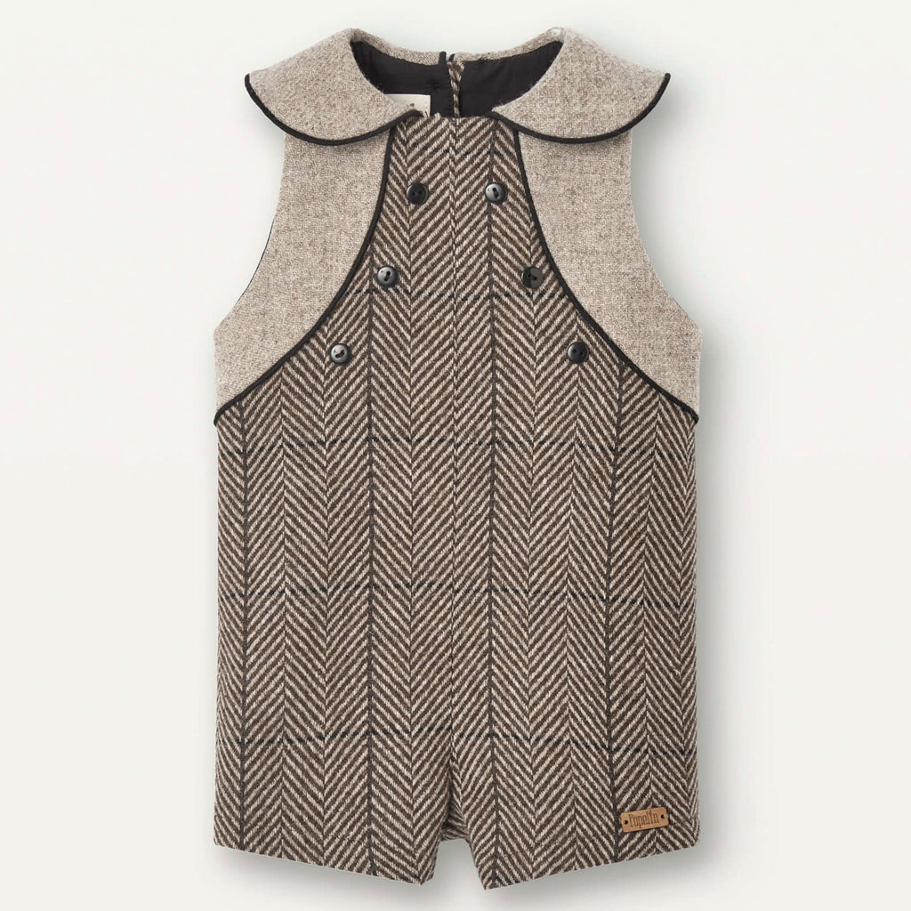 Popelin Brown Herringbone Woollen Dungarees With Baby Collar