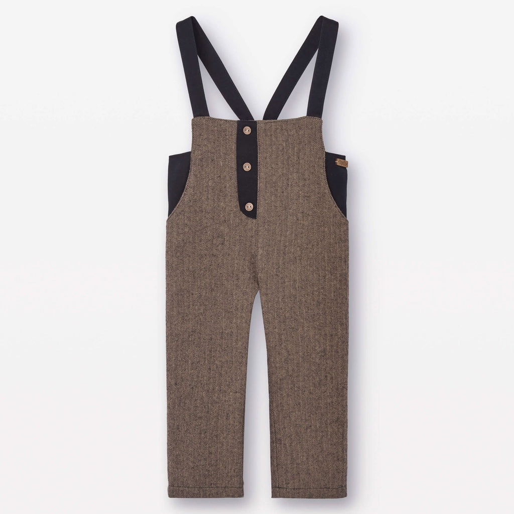 Popelin Brown Micro-Herringbone Contrasting Dungarees