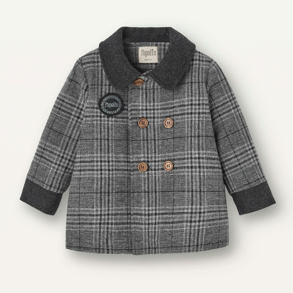Popelin Grey Plaid Woollen Double Breasted Coat